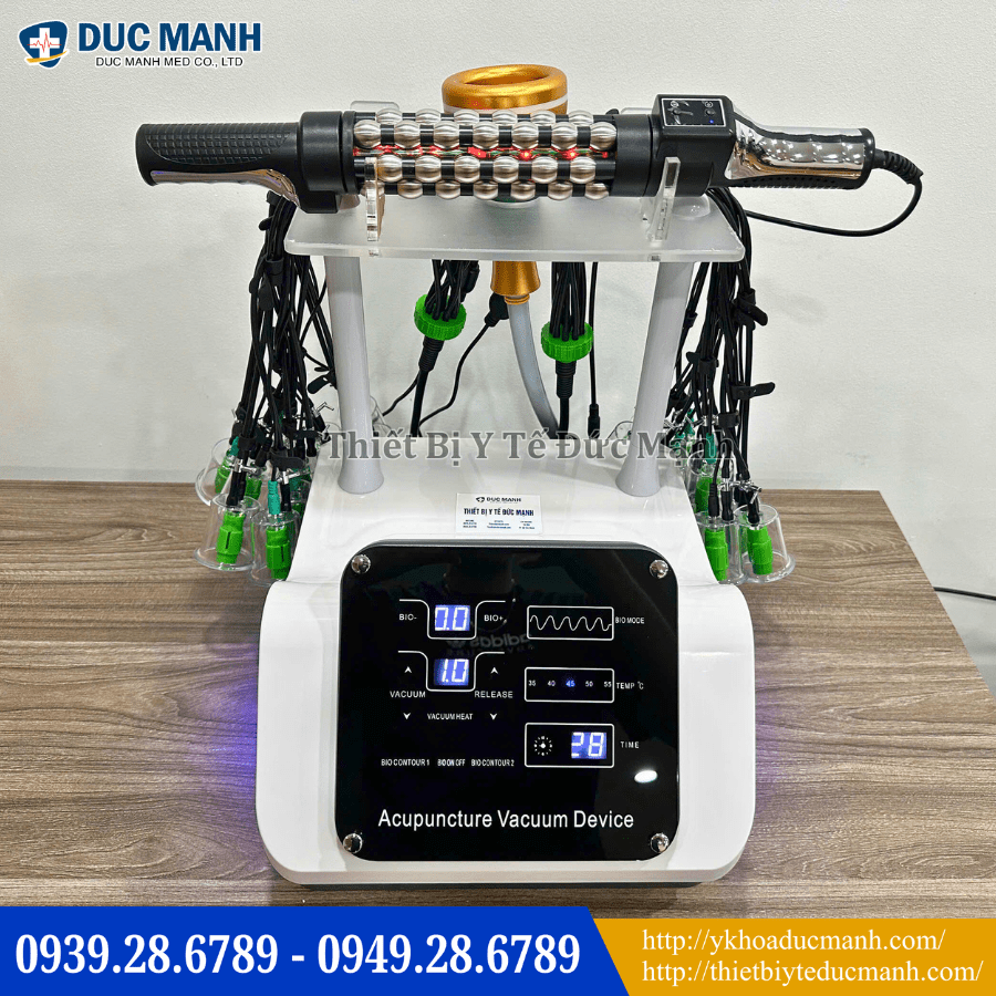 Máy điện châm không kim kết hợp giác hút là thiết bị trị liệu tiên tiến, ứng dụng công nghệ điện sinh học hiện đại trong y học cổ truyền. Thiết bị sử dụng xung điện tần số thấp để kích thích các huyệt đạo thông qua đầu dò, không cần kim châm, không xâm lấn, không gây đau đớn. Đặc biệt, máy tích hợp công nghệ giác hút chân không, kết hợp massage cơ học và sóng hồng ngoại, mang lại hiệu quả tối ưu trong việc giảm đau, lưu thông khí huyết và chăm sóc sức khỏe toàn thân.