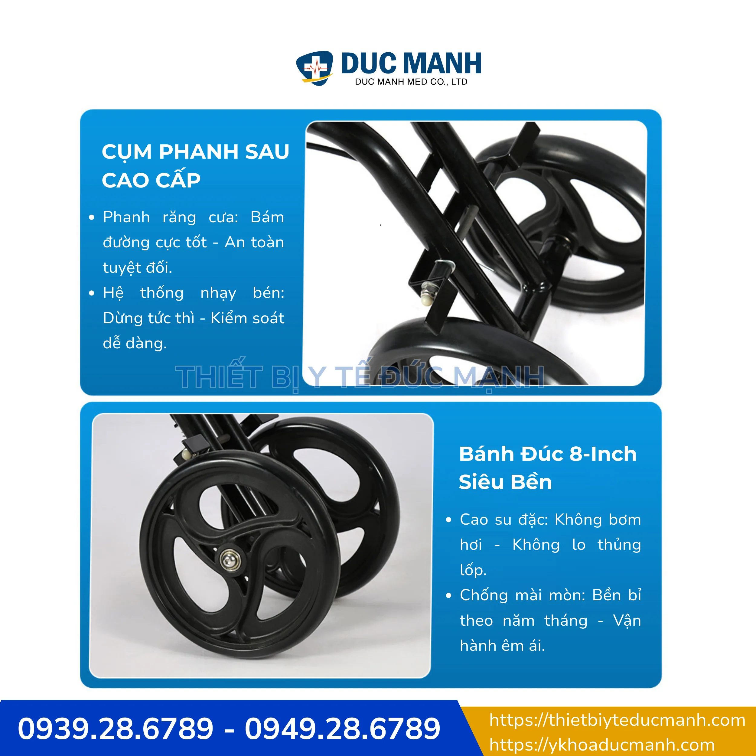 Cụm phanh răng cưa cao cấp cho khả năng bám đường tốt, dừng xe nhanh khi cần thiết, giúp người chăm sóc chủ động kiểm soát chuyển động của xe tập đi 1 chân có phanh trong mọi tình huống. Điều này giúp giảm áp lực khi chăm sóc người bệnh, đồng thời tăng mức độ an tâm trong quá trình sử dụng hằng ngày.